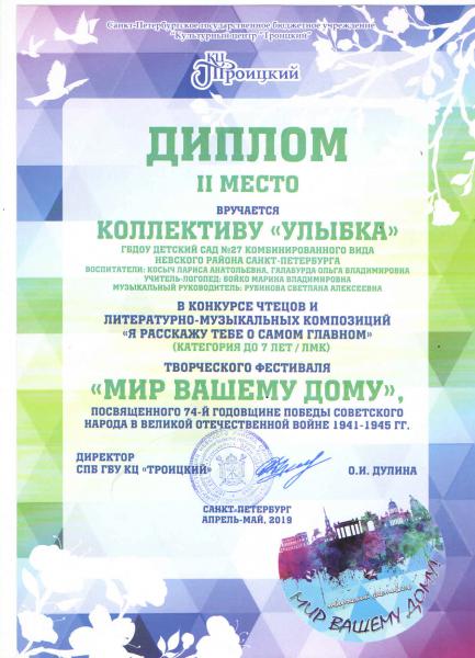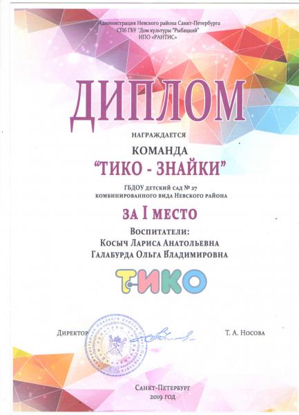 Государственное бюджетное дошкольное образовательное учреждение детский сад № 27 комбинированного вида Невского района Санкт-Петербурга